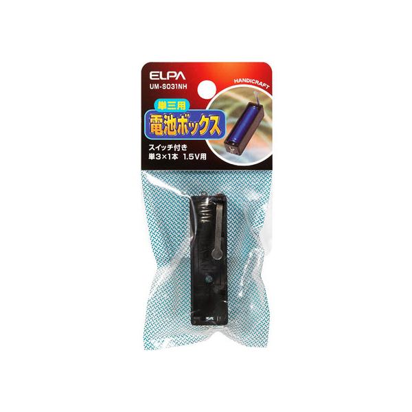 - [エルパ 電池ボックス スイッチ付(単3形×1本) UM-S031NH]の商品説明●主に理科工作・豆電球の点滅実験などに使用する乾電池用電源ボックスです。[エルパ 電池ボックス スイッチ付(単3形×1本) UM-S031NH]のスペック●仕様:単3×1本 1.5V用●機能:スイッチ付き○返品不可対象商品