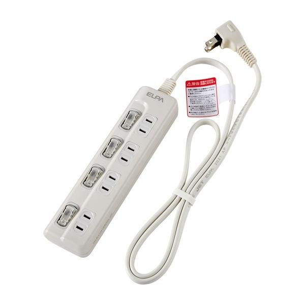 朝日電器 電源タップ 個別スイッチ 上差し AC4個口 1m WLS-LU41EB(W) 1