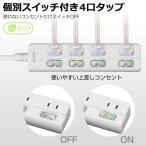 エルパ (ELPA) スイッチ付タップ コンセント 延長コード LED 上差し 4個口 3m W