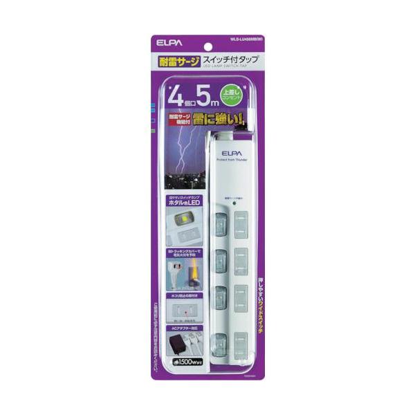 ELPA LEDランプスイッチ付タップ ウエ (WLS-LU450MB-W)