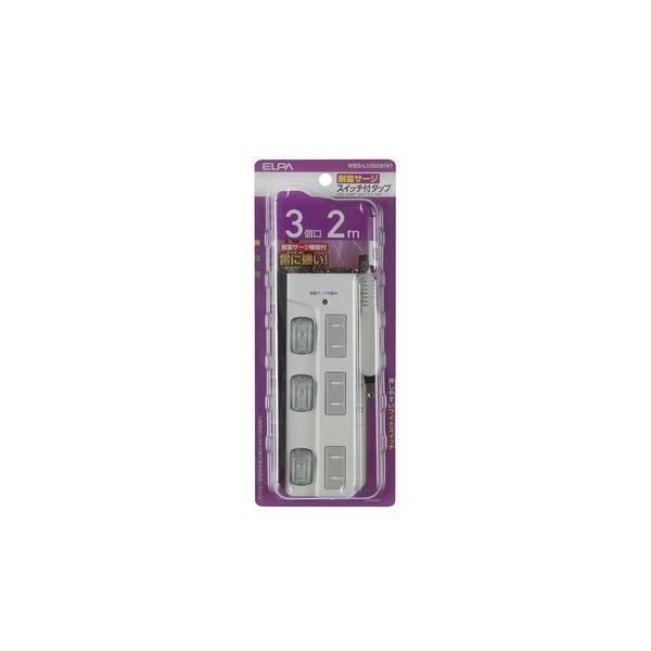 ELPA LEDランプスイッチ付タップ 耐雷サージ機能付 3個口 2m WBS-LU302B(W)