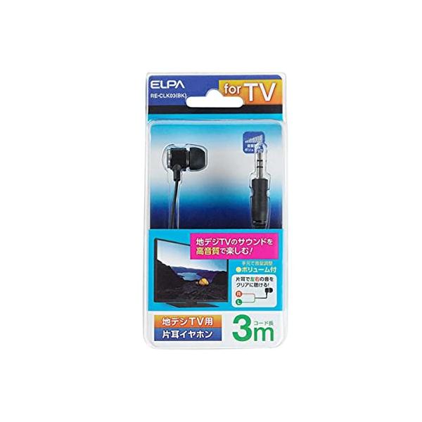 エルパ (ELPA) 地デジ用イヤホン 有線 片耳イヤホン 3m φ3.5mmストレートステレオミニプラグ(抵抗入) ブラック RE-CLK03(BK)