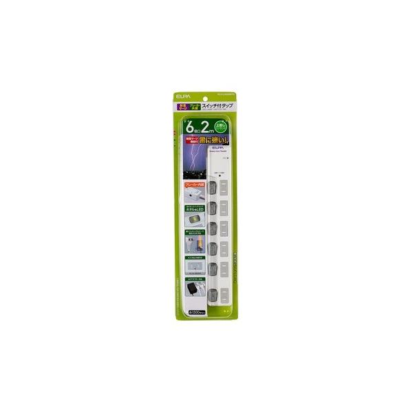 ELPA LEDランプスイッチ付タップ 上挿し 6個口 ブレイカー付 2m WLS-LU620SB(W)