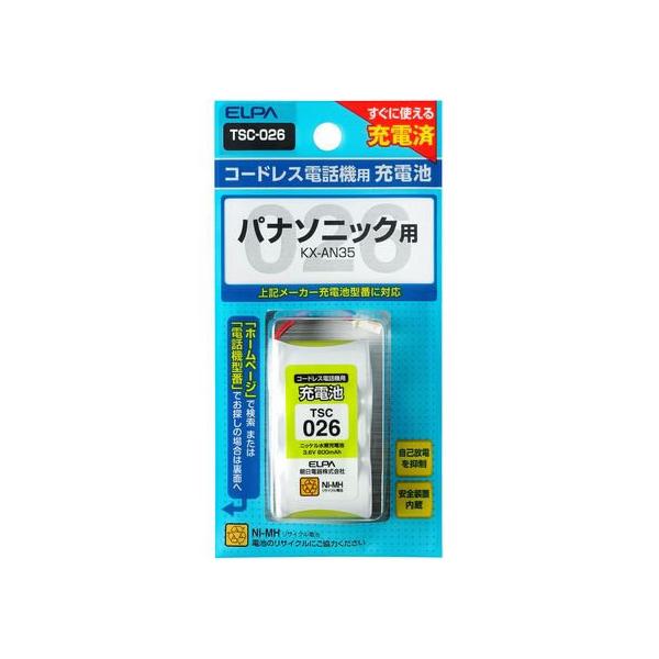 - ELPA TSC-026 電話子機用充電池●買ってすぐに使える!充電済み!【仕様】適合機種・パナソニック:KX-AN35 同等品
