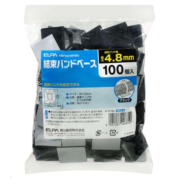 朝日電器 ELPA(エルパ) 結束バンドベース 適用バンド幅最大4.8mm 100個入 ブラック [電気配線 工事 固定] KBB-N30100P(BK)
