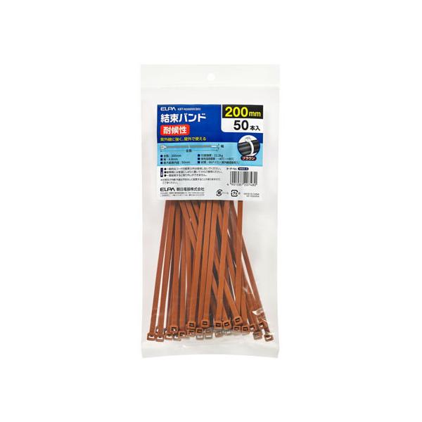 - [エルパ 結束耐候 200mm(50本入) ブラウン KBT-N200050(BR) [KBTN200050BR]] の商品説明●耐候性。●紫外線に強く、屋外で使える。[エルパ 結束耐候 200mm(50本入) ブラウン KBT-N200050(BR) [KBTN200050BR]]のスペック●入り数:50本入●引張強度:22.2kg●使用温度範囲:-40℃〜+85℃●材質:66ナイロン(紫外線遮蔽剤入)●全長:200mm●幅:4.8mm●最大結束内径:50mm○返品不可対象商品
