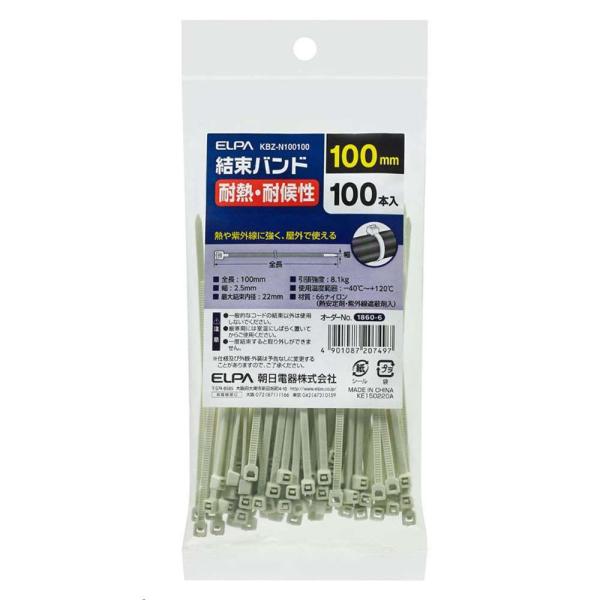 朝日電器 ELPA(エルパ) 結束バンド 耐熱・耐候性 100mm 100本入 [電気配線 工事 屋外] KBZ-N100100