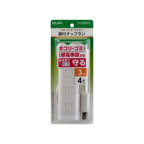 エルパ(ELPA) WBT-N4030B-W ホワイト 扉付タップラン 4個口 上挿し3・横挿し1 3m