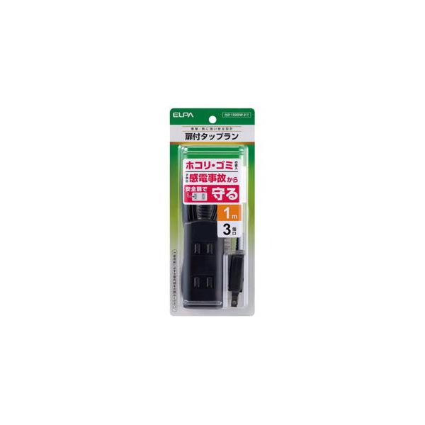 ELPA 扉付きタップラン(3個口 1m)ブラック ELPA WBT-N3010B(BK) 返品種別A