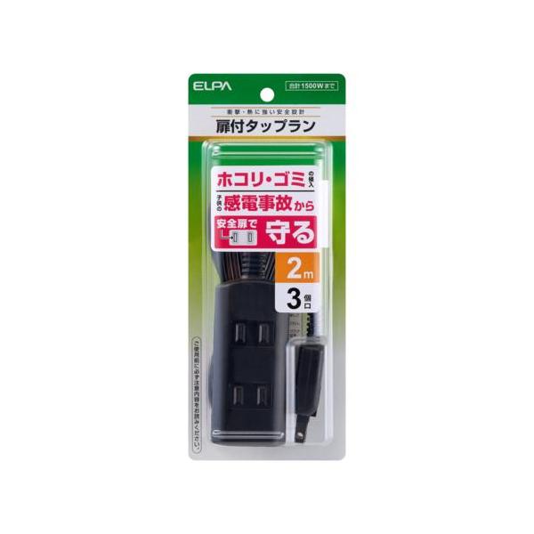 エルパ(ELPA) WBT-N3020B-BK ブラック 扉付タップラン 3個口 上挿し2・横挿し1 2m