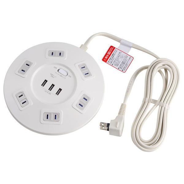 訳あり 朝日電器 耐雷丸形6P 2m USBタップ WLS-LS602RUSB(W)