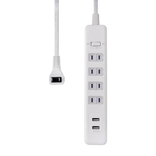 - 棒型白いグレー/棒型/WLS-402USB(W)・パッケージ個数:1・●スマートフォンやタブレットを2台同時充電可能! ●雷から接続機器を守る耐雷サージ機能付 ●ブレーカー内蔵集中スイッチ ●過電流を防止するブレーカー内蔵 ●ホコリ防止の扉付 ●コードは保護被ふく付安全構造 ●スッキリ配線できるL型プラグ■AC差込口定格:AC100V 14A ■合計:1400Wまで ■使用温度範囲:-10℃~40℃ ■屋内専用 ■コード長:2m ■口数:4個口 USBポート ■定格:DC5V 最大3.4A(2ポート合計) ■コネクタ形状:USB Aタイプ(メス) ■ポート数:2個口