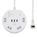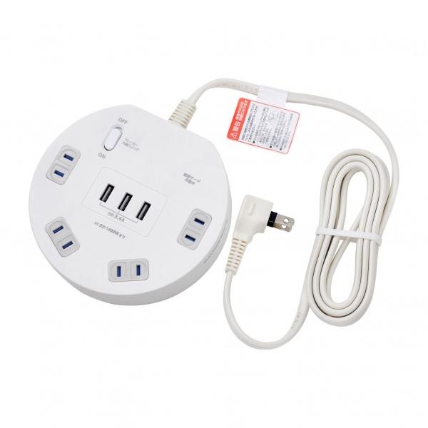 - 北海道・沖縄・離島へのお届けは別途送料がかかります。詳しくはこちら丸型でコンセントが干渉しにくいUSBタップ。●外形寸法(幅)[mm]:135●外形寸法(奥)[mm]:30●外形寸法(高)[mm]:128●USBポート数:3ポート●コンセント口数[個口]:4●定格:100V/14A/1400W●コード長:2m●色:ホワイト●USB充電定格:3ポート合計3.4A(1ポート最大2.4A)