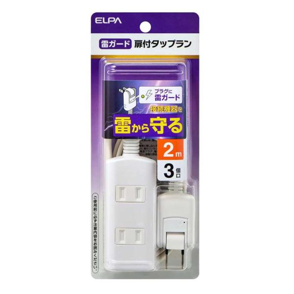 朝日電器 ELPA エルパ 雷ガード 扉付タップラン 3個口 ホワイト コード長2m [電源タップ コンセント 延長 節電 耐雷サージ スイングプラグ] WBT-N3020SB(W) 爆買