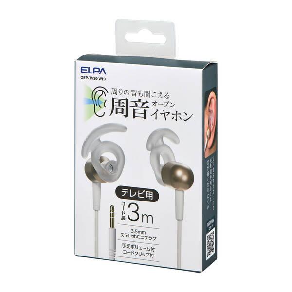 朝日電器 ELPA ELPA OEP-TV30(WH) オープンイヤホン テレビ3m ホワイト OEPTV30WH