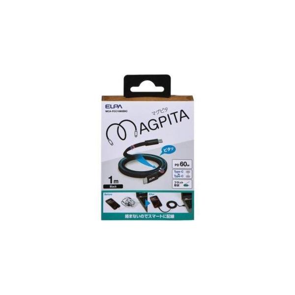 ELPA(朝日電器) MCAFCC1060BK マグネットケーブル コードが絡まない USB-C to Cケーブル 1m(MCA-FCC1060(BK))