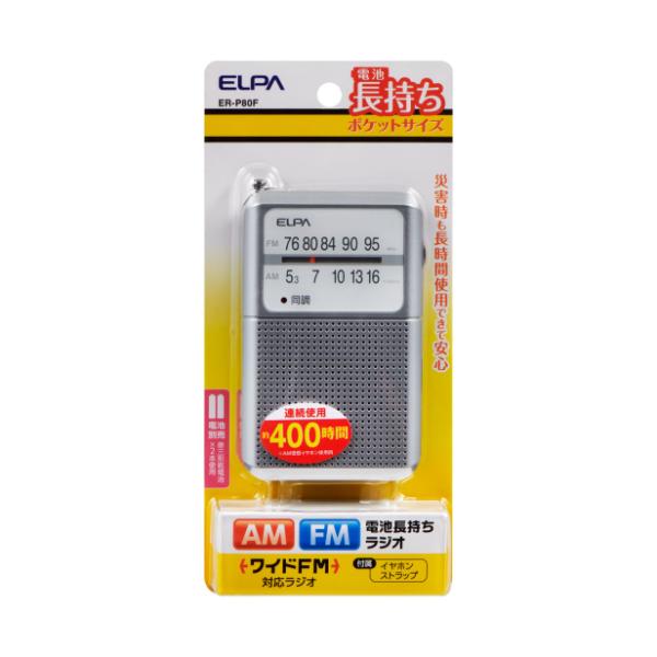 エルパ AM/FM電池長持ちラジオ ER-P80F (アナログ同調方式 イヤホン付き ストラップ付き) 爆買