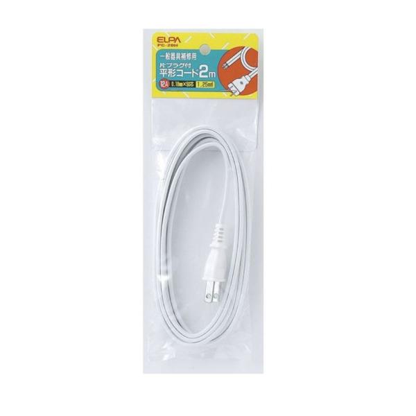 ELPA 平型コード 片プラグ付 12A 2m [電源コード 補修 テーブルタップ 延長] PC-20H 爆買