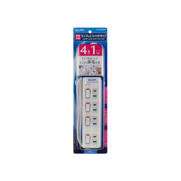 朝日電器 スイッチ付タップ 2P4個口1m WLS-410EB(W) コード付き電源タップ2ピン 電源タップ OAタップ 配線パーツ 家電
