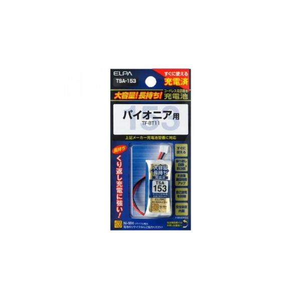 - ELPA(エルパ) 大容量長持ち充電池 TSA-153 1833200 自己放電を抑制します。さらに安全装置が内蔵されています。 生産国:中国 仕様:適合機種・パイオニア:TF-BT11 同等品電話機用2.4V 800mAhニッケル水素充電池(充電済) すぐに使える充電済!くり返し充電に強い! キーワード【家電 電池 充電池 電池充電器】