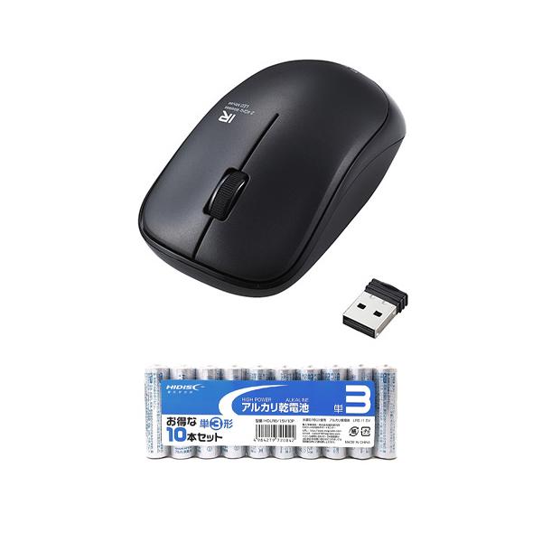 エレコム IRマウス/ENELOシリーズ/無線/3ボタン/省電力/静音ボタン/抗菌/ブラック + アルカリ乾電池 単3形10本パックセット M-IR07DRSKBK+HDLR6/1.5V10P