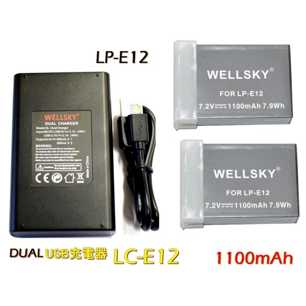 互換可能バッテリー: Canon キヤノン LP-E12 電圧: 7.2V 容量: 1100mAh 2個