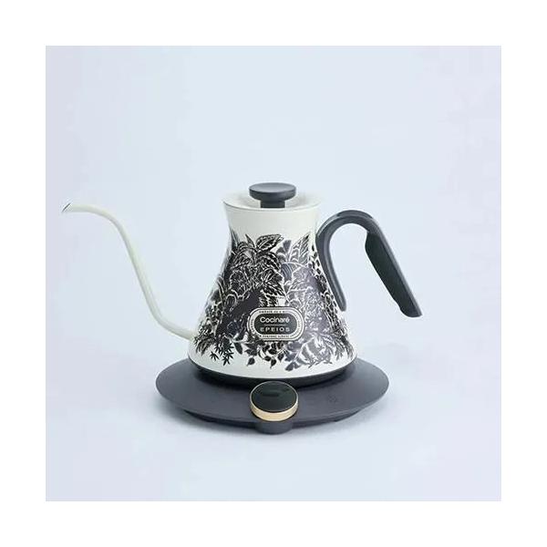 - 本体ボディには熱で色彩が変化するデザインを採用。 スマートな機能美を秘めた エペイオスの最初で最後に買うケトル ベストセラーモデルを、さらなる高みへ。 五感をくすぐり、インスピレーション溢れるドリップ体験を。 エペイオスドリップケトルはバリスタ監修・設計で、使い勝手の良い機能性、安全性とデザイン性を兼ね備え、お家で気軽に優雅なリラックスタイムを演出します。 初めて本格的なコーヒーにチャレンジする方にもこれ一台でずっとコーヒーを楽しめます。コーヒーだけでなく、紅茶やお茶にも楽しみたい方にもおすすめのモデルです。 本体ボディには熱で色彩が変化するデザインを採用。加熱により起こる鮮やかな変化で視覚的にもユーザーの感性に触れ、コーヒーの香りと共に五感を刺激し、インスピレーション溢れるようなドリップ体験を届けられるようなケトルを目指して開発されました。 正確な湯量コントロール リーチが長く、細口なグースネックノズルを採用したことで、粉に近い距離で注げる理想の形状に。 さらに、細口ノズル(口径約6mm)とカーブの融合で、今までにない繊細なドリップコントロールを可能にしました。 また、ドリップ時に手に掛かる負担、ドリップのコントロール性を考慮し、1-2杯分の抽出に最適な容量600ml仕様を採用。 ドリップの微細なコントロールも向上し、さらにコーヒーのためのケトルへと進化しました。 微細な温度調節 プロも納得の繊細な温度調節(0.5℃単位)で、まさに至高の一杯をお楽しみください。 オールステンレス製 フタから本体に至るまで、全てステンレンスを使用。 それにより、保温性はもちろん、汚れが落としやすいためお手入れも簡単です。 Vibrant Jungle(ビブラントジャングル) 黒く繊細な線で神秘的なジャングルをモチーフに描かれた"ビブラントジャングル"。テーマは"自然の美しさへの畏敬と探求"。18世紀のデザインをモチーフとしたフランスの伝統的なデザイン"Toile de Jouy / トワルドジュイ"にインスピレーションを得てデザイン致しました。 機能 ・温度調節機能(0.5℃単位) ・カウントアップタイマー(最長10分) ・温度モード ・現在の水温を表示 ・60分間の保温機能 ・前回使用時の記憶機能 ・海外ユーザーにも便利な℃/切替 ・空焚き防止機能 操作簡単タッチボタン 温度調節機能:0.5℃単位で38〜100℃まで精密な温度コントロールが可能です。 時計回りで温度が上がり、反時計回りで温度が下がるシンプルな設計です。この温度調節をしながらも加熱ができます。 5分のストップウォッチ機能:最適な時間にコーヒーを適切な温度で淹れることができます。 より繊細・正確に、好みの風味を引き出せる時間をカウントします。 温度モード:摂氏/華氏を簡単に切り替えられます。 現在の水温を表示:設定する温度とともにリアルタイムの温度もダブル表示します。 60分間の保温機能:お好みの温度で保温でき、保温している際の温度は液晶ディスプレイに表示します。 商品詳細 モデル名:EPEIOS Fine & Flow LUX 600(CP005AJJP1) カラー:ホワイト(電源ベース:ブラック) デザイン(温度変化プリント):Vibrant Jungle(ビブラントジャングル) 容量:約600ml 電源:100V 50/60Hz 消費電力:1040W-1250W 本体サイズ(約):30.5cm×14.5cm×17.2cm(本体のみ)/30.5×20×18.9cm(電源ベース含む) コード長:約1m 主な材質:ステンレス(ケトル本体) パッケージ内容:本体、電源ベース、交換用ハンドルパーツ、レンチ、取扱説明書 原産国:中国 ブランド:EPEIOS(エペイオス)エペイオスドリップケトルはバリスタ監修・設計で、使い勝手の良い機能性、安全性とデザイン性を兼ね備え、お家で気軽に優雅なリラックスタイムを演出します。 初めて本格的なコーヒーにチャレンジする方にもこれ一台でずっとコーヒーを楽しめます。コーヒーだけでなく、紅茶やお茶にも楽しみたい方にもおすすめのモデルです。 カラー:ホワイト(電源ベース:ブラック) デザイン(温度変化プリント):Vibrant Jungle(ビブラントジャングル) 容量:約600ml