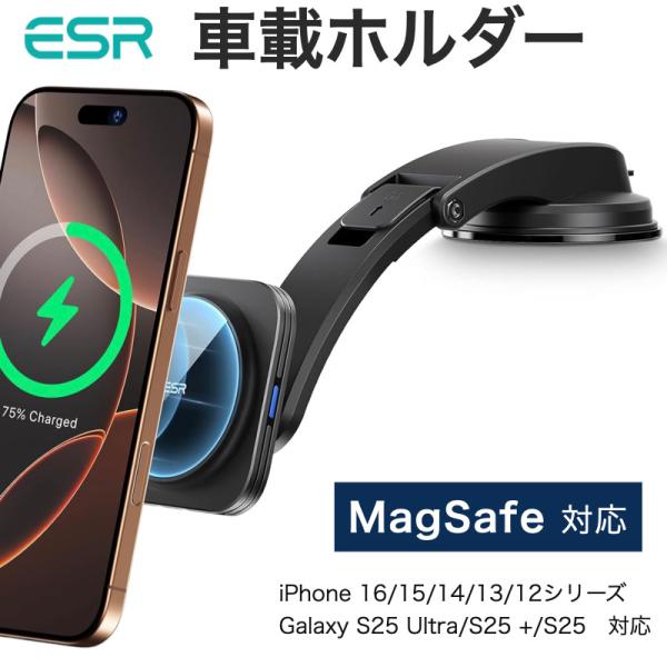 ESR HaloLock車載磁気ワイヤレス充電器 MagSafe 車載 ワイヤレス充電器 車載ホルダー MagSafe対応 スマホホルダー iPhone 17/16/15/14/13/12