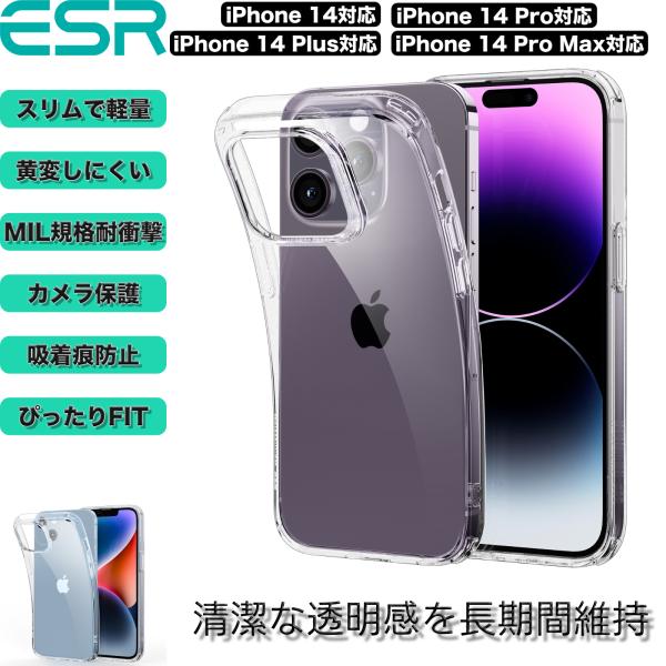 ESR iPhone 14/13/14 Pro/14 Plus/14 Pro Max クリア ケース 耐衝撃 薄型 米軍MIL規格 黄ばみにくい スリム ワイヤレス充電対応