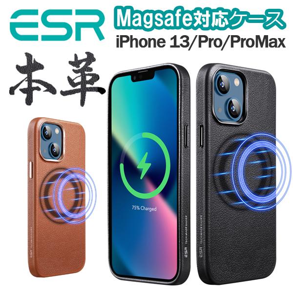 ESR iPhone13ケース 本革 13Pro 13ProMax リアルレザーケース MagSafe対応 磁気充電対応 カメラガード ワイヤレス充電 レビュー 100日保証
