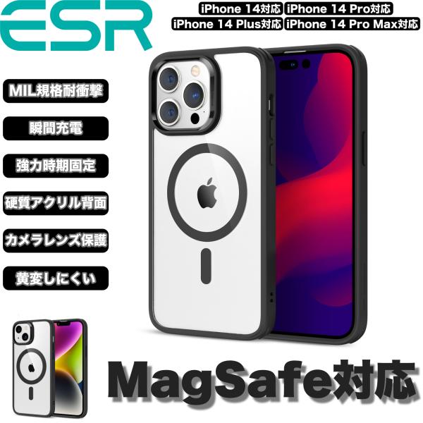 ESR iPhone 14/13/14 Pro/14 Plus/14 Pro Max クリアブラックケース MagSafe対応 ワイヤレス充電 HaloLock搭載 耐衝撃性 米軍MIL規格