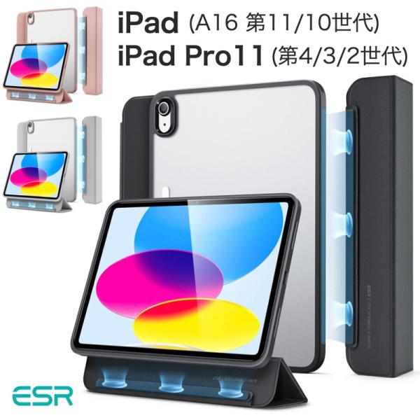 iPad ケース ESR iPad 第11世代 A16 第10世代 ケース iPad Pro 11 インチ 第4世代 ケース ハイブリッド 取り外し可能磁気カバー オートスリープ