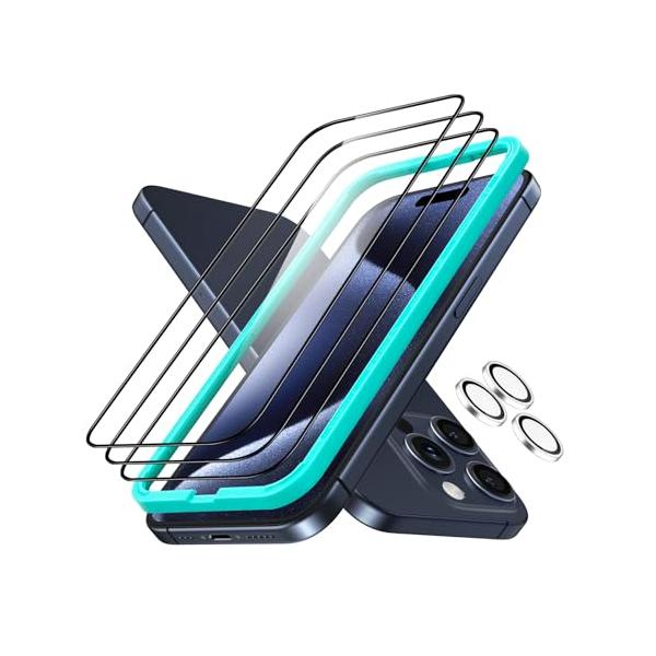 ESR Armorite 保護フィルムセット iPhone 15 Pro用 超タフ 強化ガラス 取り付け簡単フレーム 独立型カメラレンズフィルム