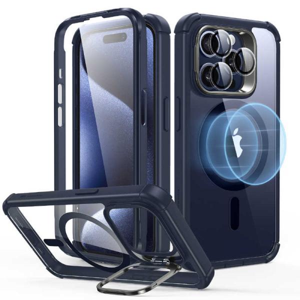 - 【対応機種】 iPhone 15 Pro 専用です。 iPhone 15 Pro 専用の独立型強化ガラス製カメラレンズフィルム付き。 【360°全面保護】 耐傷性に優れたアクリル製背面ケースと衝撃吸収エアガードコーナー、スピーカーダストシールド、強化ガラス製保護フィルム内蔵のタフなスクリーンガード、カメラレンズフィルムが一体となった、米軍MIL規格を超えた頑丈なiPhone保護。 【調節可能なスタンド】 隠れスタンドは、縦横両用で15 〜85°まで調節でき、ハンズフリーでFacetimeや動画を視聴できます。 【より強力な磁気吸着】 1,500 gの吸着力を持つ強力な内蔵磁石により、素早く簡単にワンタッチでワイヤレス充電が可能で、MagSafe互換性に100%対応し、すべての公式およびESR MagSafe充電器とアクセサリーを確実に吸着します。 【長持ち設計】 頑丈で耐久性のある亜鉛合金により、いつでも新品のような輝きを維持。ヒンジは3,000 回以上の使用後も強度が維持されること実験済み。