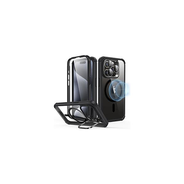 ESR iPhone 15 Pro Max 2パート ハイブリッドケース(MagSafe対応) ESR Clear Black ArmorToughCasewithStashStandforiPhone15ProMax