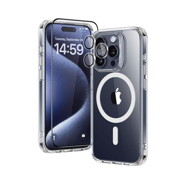 ケース+フィルム セット!レンズ保護ESR iPhone 15 Pro Max ケース セット 強化ガラスフィルム1枚 レンズフィルム1組 いp