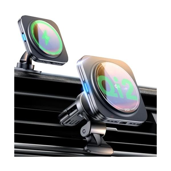 ESR Qi2 15W充電 magsafe 車載 スマホホルダー magsafe充電器 Qi2認定 エアコンルーバー/ダッシュボード式車載ホルダ