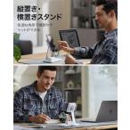 iPhoneの充電パッドは、縦向き用にFaceTime、横向き用に動画を見ながら、ハンズフリーで充電するために最適な高さと角度に調節できます。