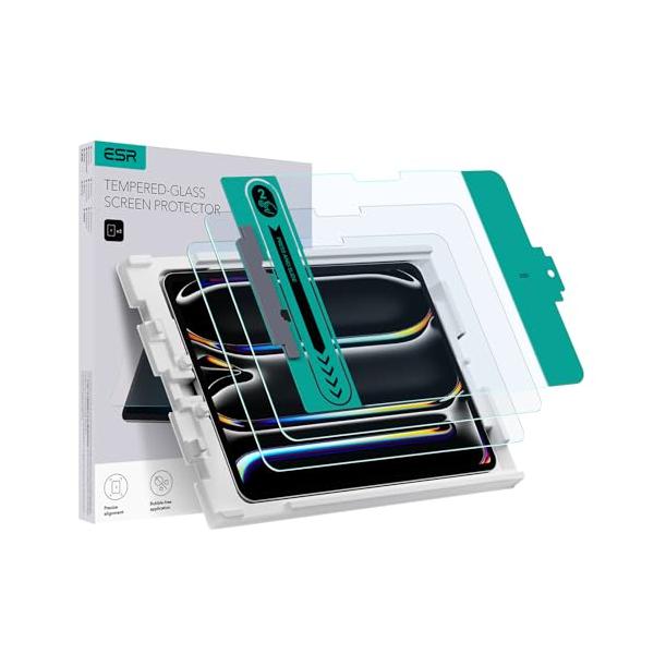 ESR2枚セットiPad Pro 11インチ フィルム M4 2024専用 スクリーン保護フィルム 自動位置合わせキット付き強化ガラスフィルム