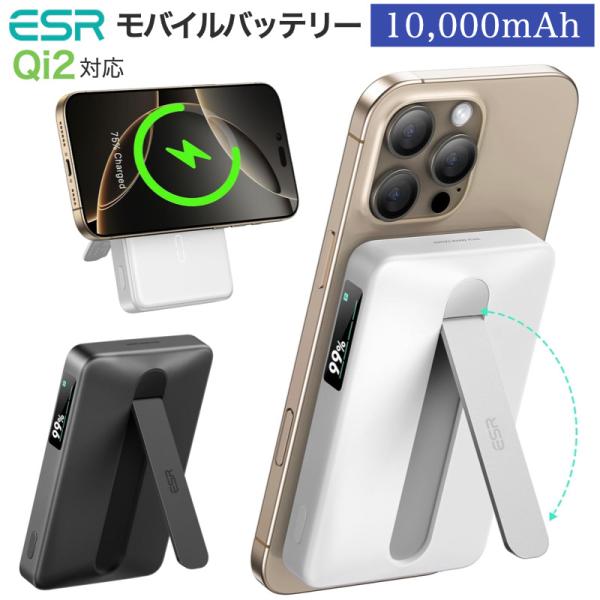 ESR Qi2認証 MagSafe対応 モバイルバッテリー 折りたたみ式 10,000mAh 15W 急速充電ポータブル充電器 LEDディスプレイ iPhone 17/16/15/14/13/12