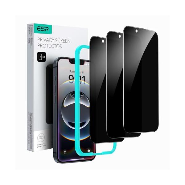 覗き見防止ESR iPhone 16e フィルム iPhone 14/13/13 Pro ガラスフィルム [ガイド枠付き貼りやすい ] 耐衝撃