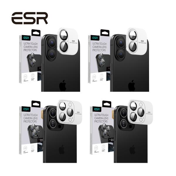 - ESR iPhone 16/16Plus/16 Pro/16 Pro Max/15 Pro/15 Pro MaxおよびiPhone 14 Pro/14 Pro Maxカメラレンズフィルム 独立型レンズフィルム 耐傷性 極薄 アルミ製エッジ付き 強化ガラス 2眼/3眼対応 Armorite Camera Lens Protectors Clear / Black【国内正規品】