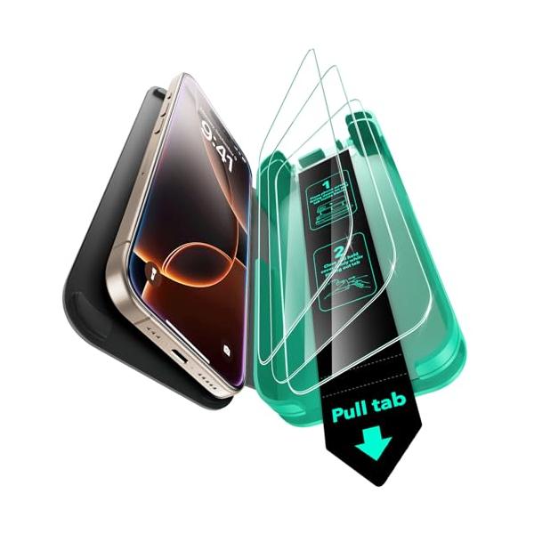 3秒で完成・50kg耐衝撃ESR iPhone 16 Pro Max ガラスフィルム 9H越え 強化ガラス いphone16promax ガラス