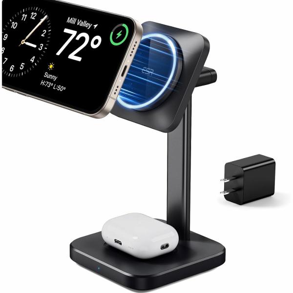 ESR MagSafe対応 Qi2認定 最大出力25W 高速充電 冷却ファン付き 3 in 1 充電器 Qi2 3-in-1 Watch Wireless Charging with CryoBoost Black ESR677 返品種別A