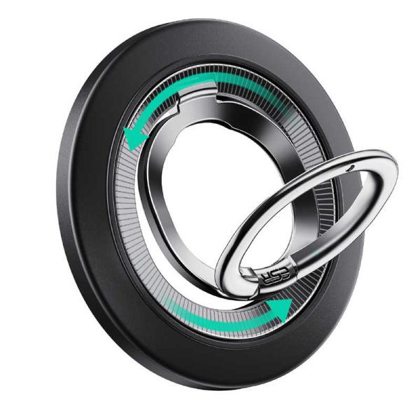 ESR 強力マグネットスマホリング MagSafe対応 360度回転 両面マグネット スマホスタンド ブラック 2K6180101 - Black