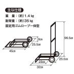 - 簡単収納なコンパクトキャリー仕様1重量 1.4kg仕様2耐荷重 35kg仕様3固定用ゴムロープ一体型簡単収納なコンパクトキャリー
