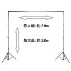 スタンド部はエアクッション付きで最大高は2.8m。背景紙サポート用のバーは背景紙の幅に合わせて素早く長さを決定できる3段の伸縮式で、最大2.9m幅まで対応。ロケにも便利なキャリングケースも付属しています。目的に応じたロール紙や背景布を別途ご用意ください。