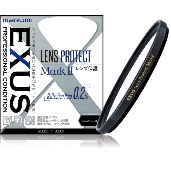 - EXUS Lens Protect Mark IIは、マルミのレンズ保護フィルターの最高峰に位置する「EXUS Lens Protect SOLID」と同等の「超低反射コーティング[反射率:0.2%]」・「帯電防止コーティング」・「撥水コーティング」・「防汚コーティング」を備え、レンズ本来の描写力を最大限に活かし、可視光に影響を与えない無色透明な高性能レンズ保護フィルターです。