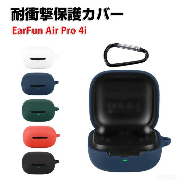 - EarFun Air Pro 4i ケース 耐衝撃 柔軟性のあるシリコン素材 カバー イヤホン・ヘッドホン アクセサリー CASE 落下防止 収納 保護 イヤーファン エア プロ4i ソフトケース 便利 カバーを装着したまま、充電タイプ可能です カラビナ付き