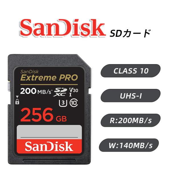 SanDisk SDカード 256GB Extreme PRO SDXCカード UHS-I サンディスク U3 V30 6K 4K R:200MB/s W:140MB/s 海外パッケージ 正規品